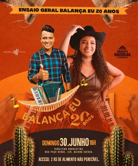 No dia 30 de março, o Restaurante Tabuleiro Nordestino do Alberto Marcelino foi palco de uma celebração inesquecível: o Audiovisual dos 20 Anos da Banda Balança Eu! Uma noite repleta de emoção, nostalgia e, claro, muito forró autêntico!